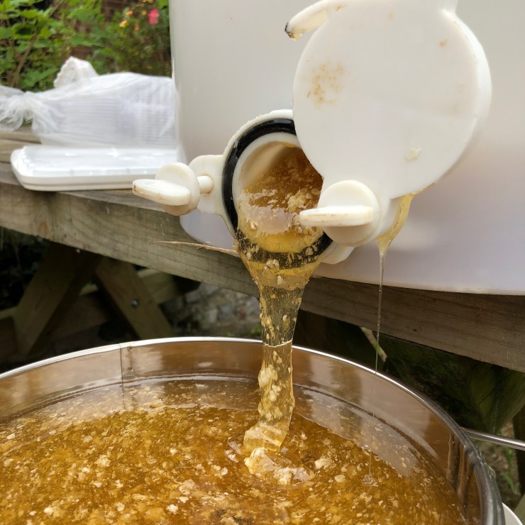 I keep my bees basically in accordance with Rose hive principles – I don’t use queen excluders and I don’t clip the wings of the queen (and not just because I can’t ever find her) – this means the bees are completely free to leave whenever they want. I always leave them enough honey for the winter so I don’t really have to feed sugar (except in emergency situations where the survival of the hive depends on it). The honey is not heat-treated or pasturised, it is raw honey that is simply filtered and is delicious