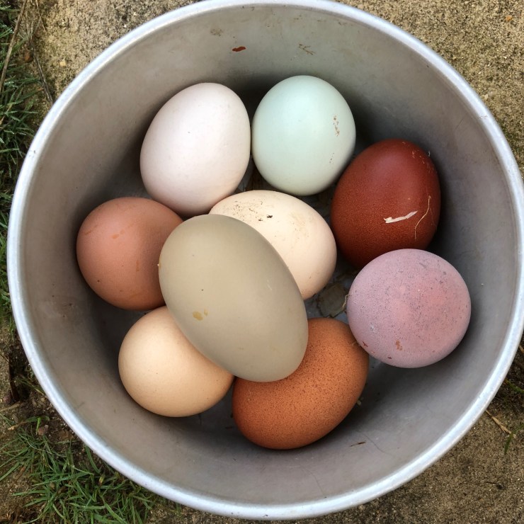 Our chickens completely free-range around the smallholding and campsite. We hatch out many of our own chickens from our breeding stock – the cockerels live a happy life until the end of the summer when we kill and eat them.